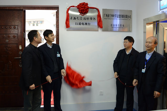 張遠處長、李棟學處長、韋紅教院長、羅華(huá)書記共同為我院行道電視台揭牌(pái)
