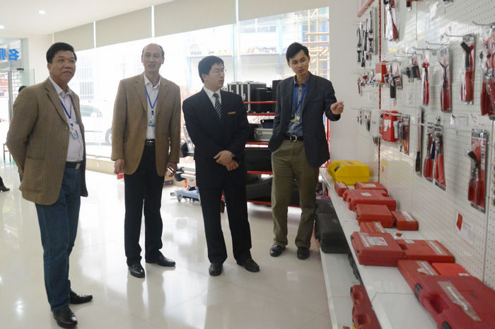 韋紅教院長向(xiàng)韋貴儒總經理介紹我(wǒ)院大師工作室設備