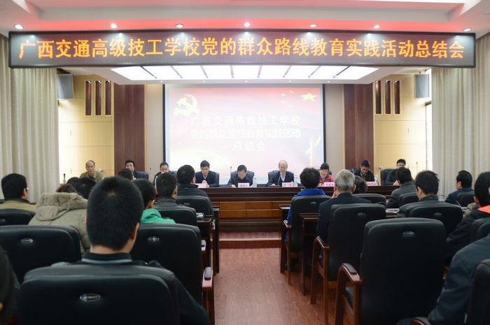 2月24日(rì)下午,我校黨的群眾路線教育實踐活動(dòng)總結會在學(xué)校信(xìn)息中心四(sì)樓會議室舉行。自治區道路運輸管理局黨委書記孫永生、黨(dǎng)委辦公室主任(rèn)王愛君、技能鑒定科科長肖三亮、人事科副科(kē)長劉亮,我校黨委書記羅華,院長韋紅教,副院長陸天雲、鍾修仁、關(guān)菲明,院長助理(lǐ)譚勁濤、鄭超文等領(lǐng)導出席,我(wǒ)校全體教職員工參(cān)加了會議。