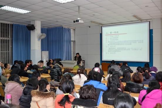 其後(hòu),鄭(zhèng)超文助理把我(wǒ)校國(guó)改示範校建設內容(róng)及步驟劃分為五大階段的進行了具體講解。鄭助理的詳細講述,讓全體教師對國改(gǎi)示範校建設有了全麵而深入的認識,她強調我校目前處於建設的重要階段,任(rèn)務繁重,全體(tǐ)教師應迎難而上,為把我校建設成(chéng)為國(guó)家優秀的(de)示範校而努力奮鬥。