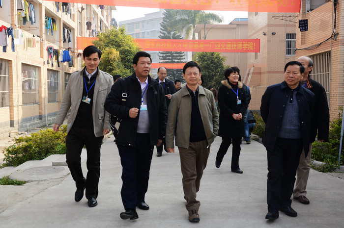 2013年12月31日(rì)上午,自治區交通運輸(shū)廳總工程師王劼耘、科教處處長岑春,自治區道路運輸管理局孫永生書記等一行深(shēn)入我(wǒ)院高峰校區、伊嶺校區視(shì)察,詳(xiáng)細了解兩個校區的建設(shè)和學生的學習生(shēng)活情(qíng)況。學院院長韋紅教,黨委書記羅華(huá),副(fù)院長陸天雲、鍾修仁、關菲明,院長助理譚勁濤、鄭超文以及相關部門中層領導陪(péi)同視察(chá)。