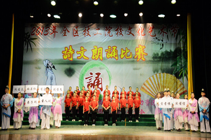 2013年12月(yuè)21日下午,由(yóu)自治區人(rén)力資源和社會保障廳主辦、廣西技工學校研究(jiū)會協辦的2013年全區技(jì)工院(yuàn)校文化藝術節(jiē)詩文朗誦比賽(學生組)圓滿落幕。參加此次比賽共有來自全區22所中職院校的37支隊伍。我校參賽隊表現優異,喜獲該比賽一等獎。