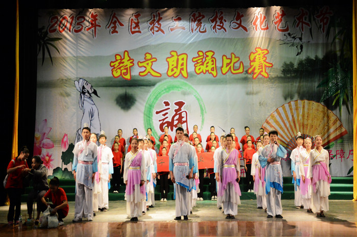 參加此次比賽(sài)共有來自全區22所中職院校的37支隊伍。“弟子規,聖人(rén)訓,首孝弟,次謹(jǐn)信(xìn),泛愛(ài)眾,而親仁,有餘力,則學文······”我院學生鏗(kēng)鏘有力、聲情並(bìng)茂的誦讀立刻(kè)感染了現場的觀眾,將中華傳統(tǒng)文化在悠揚的音樂中款款(kuǎn)道來。我院(yuàn)學生(shēng)還在朗誦中插入情境表演(yǎn),逼真有趣的演(yǎn)出、朝氣蓬勃的朗誦(sòng)贏得(dé)觀眾們熱烈(liè)的掌聲,充分展示了我院學子自信大方、積極向上的精神風貌。