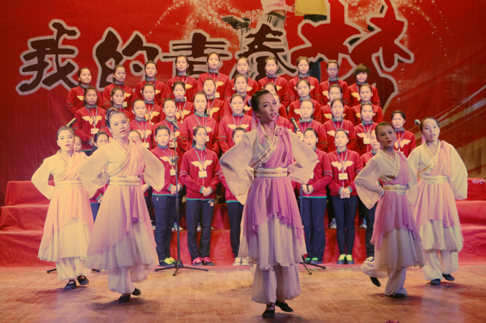 學生《弟子規》朗讀(dú)競賽是此(cǐ)次文(wén)化藝術節的重要項目(mù)之一,15個班級經(jīng)過不(bú)斷練(liàn)習和精心準備,為現場(chǎng)觀眾獻上了一場視聽大餐。伴隨著整齊洪(hóng)亮的朗讀聲,富有創意的情景表演和優美動人的舞蹈贏得觀眾們的(de)熱(rè)烈掌(zhǎng)聲。