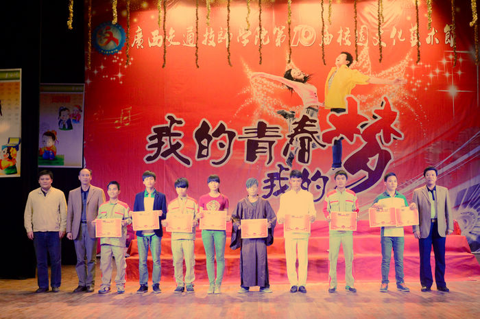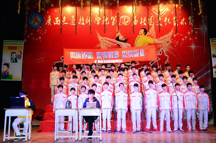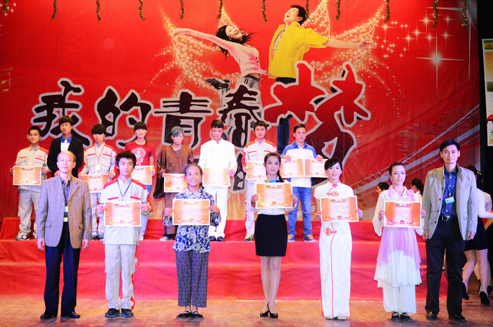 125日晚,我院第十屆校園文化(huà)藝術節在學院大禮堂拉開帷幕。自治區人力資源和社會保障廳技工教育教研(yán)室副調研員曾文,學院韋紅教院(yuàn)長、羅華(huá)書記、鍾修仁副院長、關菲明副院長、譚勁(jìn)濤院長助理出席開幕式,並為當晚(wǎn)《弟子規》朗誦競賽獲(huò)獎的(de)班級頒獎。開幕式由鍾修仁副院(yuàn)長主持。