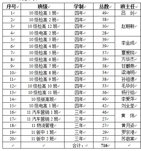 2、全日製初中起點、2014屆畢業(yè)的我院四個重點示範專業(汽(qì)車檢測維修(高級工)、汽(qì)車維(wéi)修(xiū)與鈑金(中、高(gāo)級工);汽車營銷(中級工);物流管理(中級工)。詳(xiáng)見下表: