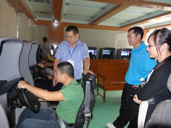 節能減(jiǎn)排聯合檢查(chá)工作小組在體驗模擬駕駛器