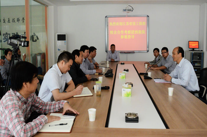 10月19日上午,由南京交通技師學院、鹽城技師學院、江蘇汽車技師學院(yuàn)等11所江蘇省技工院校組成的考察團到我院參觀交流。我院關菲明副院長熱情接待並陪同參觀,並就(jiù)中(zhōng)職院校校企合作項目、教育教學管理等(děng)問題進行座談。