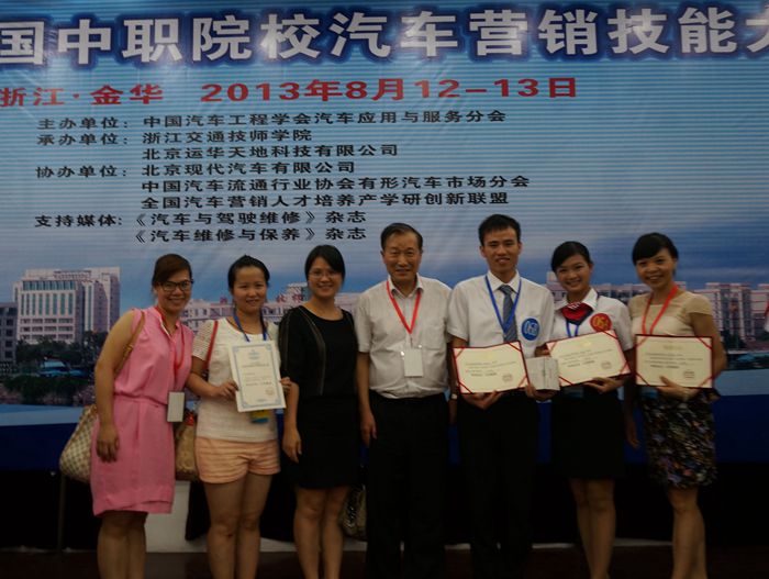 2013年8月,2013運華(huá)全國中職院校汽車(chē)營銷技能大賽在浙(zhè)江省金華市舉行。我院選派的學生黃朗文、李晨參加了此次大賽,獲得第(dì)六名(二等獎的(de)第一名)。