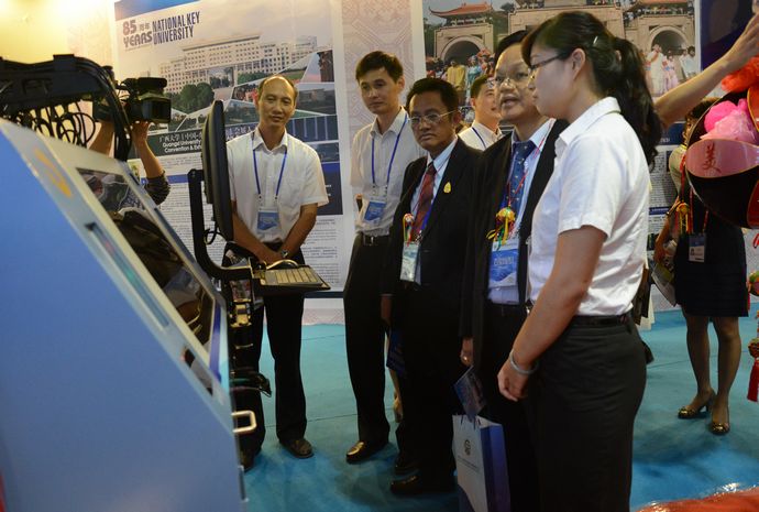9月3日下午,以“發(fā)展現代職(zhí)業教育,服務經濟轉型升級”為(wéi)主題的2013中國(guó)-東盟職業教育聯(lián)展暨論壇在(zài)廣西科技館開幕。中國教育部副部長魯昕,東盟國家代表、柬埔寨(東盟輪值主(zhǔ)席國)教育青年體育部副部長英·德和廣西壯族自治區副主席李康等領導出席開(kāi)幕式並致辭。我院作為參展(zhǎn)單位參加了此次“中國—東盟職業教育聯(lián)展”。 教育部副部長魯昕、自治區副主席李康、教育廳廳長(zhǎng)秦斌等領導蒞臨我院展台參(cān)觀指導。