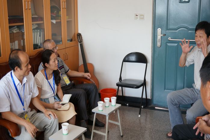 浙(zhè)江(jiāng)交(jiāo)通技師學院駕培中心副主任王忠學(圖中)及(jí)其(qí)該校優秀(xiù)教練員代表分別做示範校項目介(jiè)紹