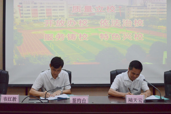 圖七:韋紅教院長與陸(lù)天雲副院長簽(qiān)訂責任書