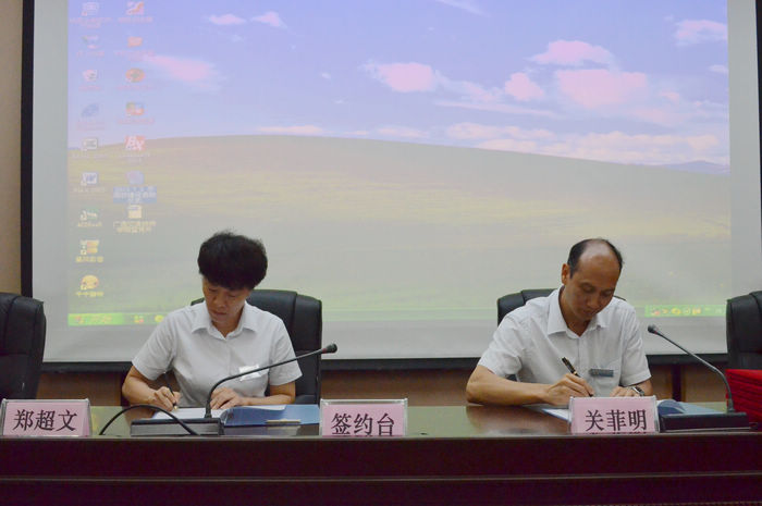 圖九:關(guān)菲明副院長(zhǎng)與鄭超(chāo)文院長助理(lǐ)簽訂責任書