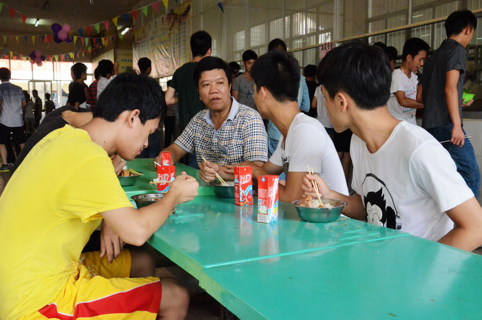 6月(yuè)20日下(xià)午,我院1500多名即將前往就(jiù)業單位(wèi)的頂崗實習生(shēng)手持(chí)學院(yuàn)為(wéi)他們發放的免費加菜餐券有序地來到食堂就餐(cān),學院鍾修仁副院長來到學生們中間,與正在就餐的(de)同學們親切交談。