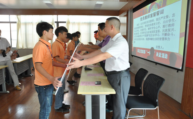 在落(luò)實了黨員教師與(yǔ)學生代表(biǎo)進行”一對一”關愛活動分工安排之後,全體黨員教師在黨旗下莊嚴舉起右手宣誓:忠誠黨的教育事業,貫徹(chè)黨的教育方針,關注(zhù)學生、關心學生、關愛學生,履行教師神(shén)聖(shèng)職責;引導學生為實現國家富(fù)強、民族複興、人民幸福的偉大“中國(guó)夢”而發奮學習、不懈奮鬥。為學生的美好未來,願奉獻全部的智慧和力量!隨後,黨員教師代(dài)表將愛心卡傳遞給受(shòu)關愛(ài)的(de)學生。