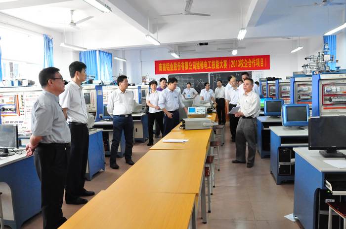 曾繁(fán)京校長介紹了該(gāi)校基本情況:廣西石化高級技工學校立足廣西經濟社會(huì)發展和北(běi)部灣經濟區開發建設辦學,開設機械、化(huà)工、電氣、信息(xī)和服務四大係30多個專業,在校(xiào)生9000多人,是國家重(chóng)點技工學校、全國職業教育先進單(dān)位、石油和化工行業職業教育與培訓全國示範(fàn)性實訓基地、國家高技能人才培養示範基地(dì)、全國精神文明建設工作先進單位。