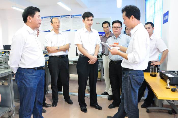 我院考察團一行(háng)參觀了(le)廣西石化(huà)高級技工學校普車實訓中心、數控實訓中心、機械設備安裝與維修中心、電力拖動綜合實訓室、機電(diàn)一體化實(shí)訓中心(xīn)、維修電(diàn)工實訓室、綜合實訓大樓等實訓場地以及該校的校史展覽室。該校完善的(de)教學(xué)設施設備和嚴謹的教學管理給我院考察團留下深刻印象。