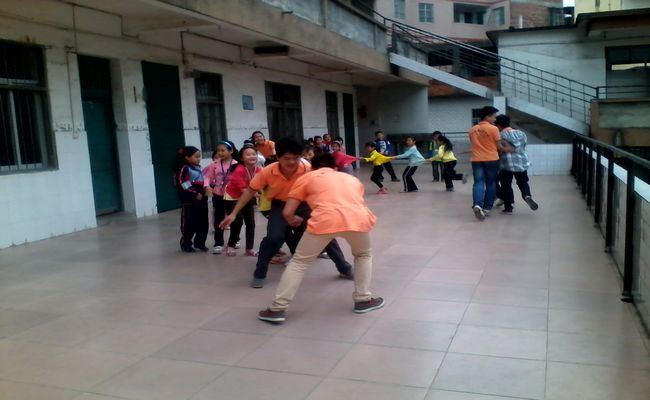 圖三:休息時間,我院舞蹈協會同學與(yǔ)小(xiǎo)朋友玩“老鷹(yīng)抓小雞”