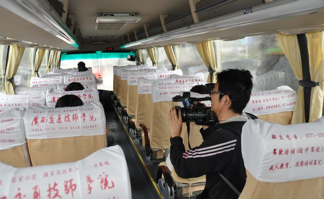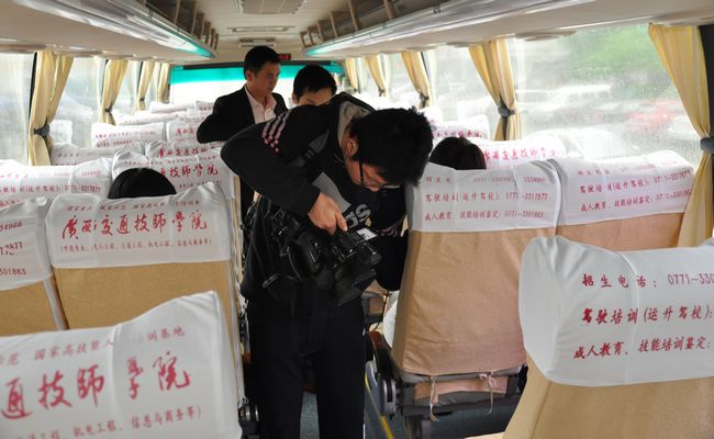 廣西電視台記者和我院駱任芳老師以體驗者的(de)身份參與到了這次拍攝過程中,為了使體驗感受更加真切,電視台記者係好安全帶,駱任芳老師特意不係安(ān)全帶,客車司機則模擬車輛在行駛時遇(yù)到的各種複雜路況進(jìn)行急刹、急速轉彎等(děng)各種突發性駕駛,讓(ràng)人始料不及的是(shì),駱任芳老師不但(dàn)多次碰撞前座的靠背,而且膝蓋也撞到了前(qián)座坐墊下的鐵杠,甚至整個人跌出了走道;而廣西電(diàn)視台體驗記者則坐得穩穩當當,安然無恙(yàng)。模擬體驗結(jié)束後,記者(zhě)問及駱任芳老(lǎo)師對這次(cì)體驗活動(dòng)的感受,她說:“這(zhè)次乘車雖然是模擬體(tǐ)驗,但真的讓人很(hěn)緊張,多次出現的(de)碰撞以及跌出(chū)走道讓(ràng)我真正(zhèng)意識到,乘車過程(chéng)中存在著很多潛在的危險,我們要防患於未然才能避免這些事故的發(fā)生,所以乘車(chē)係安全(quán)帶真的很重要。”