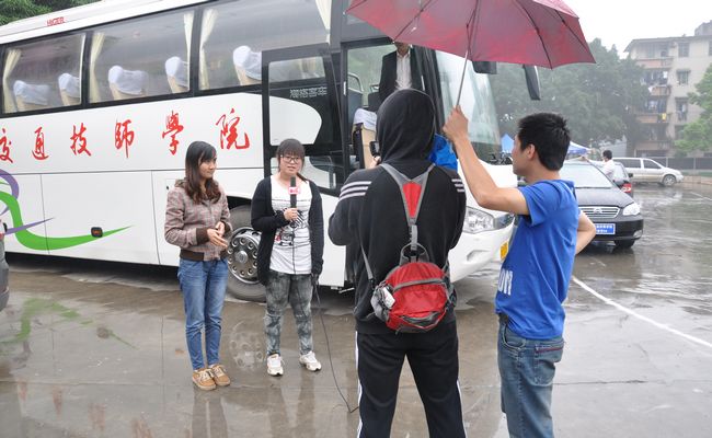 圖五(wǔ):電視台記者采訪我院駱任芳老師對此次體驗活動的感受