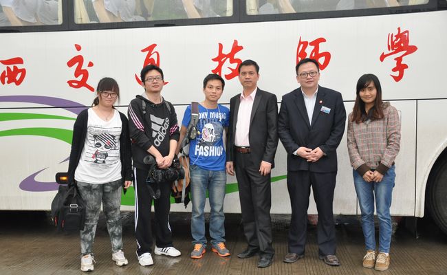 圖七:我院安全節能(néng)文明駕駛公益學(xué)校特色項目負責人李毅、羅聲(shēng)儉等有關人員與廣西電視台拍攝組合影