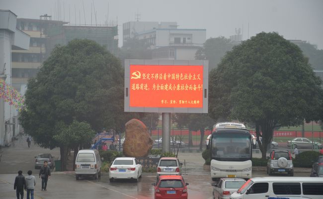 圖1:校園全彩顯示頻上全天滾動(dòng)播放“十八大(dà)精神”摘要——堅定不移沿著中國特色社會主義道(dào)路前進,為全麵建成小康(kāng)社會而奮鬥!