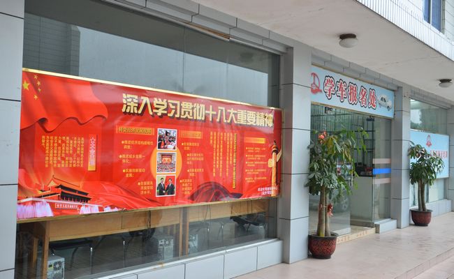 圖(tú)12:成人繼續教育(yù)與鑒定中心展板——掀起學習貫徹十八大精神熱潮