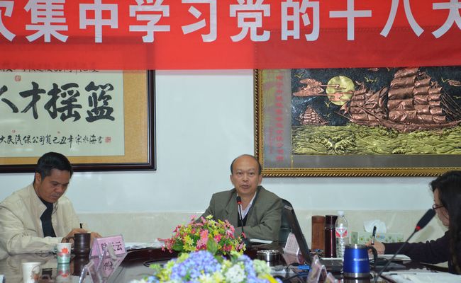 11月30日下午,我院黨委中(zhōng)心組2012年第四次集中學習黨的十八大(dà)精神會議在辦公樓二樓會議室召開。會議深入學習了胡錦濤同誌在十八大(dà)會議上所作的(de)報(bào)告,並提出學習(xí)貫徹(chè)意見。全體中層以上領導幹部,以及各黨支部書記、團委書記均按時參加了會議。會議(yì)由學(xué)院黨(dǎng)委委(wěi)員、副院長陸天雲同誌主持。黨委書記(jì)羅華同(tóng)誌在會議上做了重要學習講(jiǎng)話。