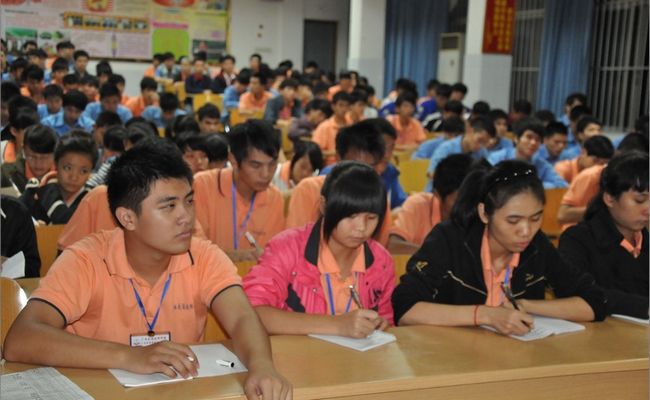 這些身穿(chuān)工作(zuò)服、平日裏總在車間裏(lǐ)緊張操作的技校生們,此時竟(jìng)如此嚴肅而沉靜;他們個個全神貫(guàn)注、認真聽講,仔細地聽老師講新課、說新知,微笑著回答老師的提問,隨著羅書記(jì)的講授(shòu)時而凝思,時(shí)而神采飛揚。