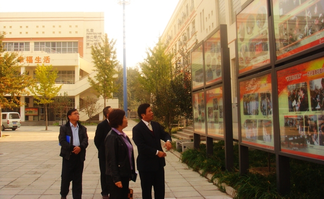 圖二(èr):鍾副一行在北京市商業學校負(fù)責人陪同下參觀校園文化建設