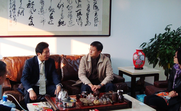 圖五:鍾副院長與(yǔ)北京市通州物流基地的英絡物流(中國)有限公司徐建華總經理就(jiù)企業(yè)需求人才(cái)等方麵進行洽談