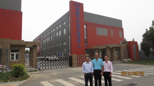 圖為關菲明副院長(居(jū)中)、樊海林(lín)主任(左一(yī))、李春老師(右一)參觀中(zhōng)國汽車技術研究中心留影