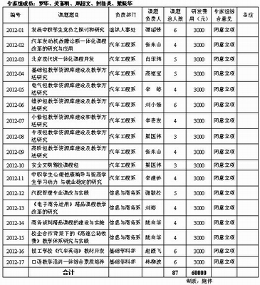 2012年度(dù)校內科研項目立項明細表