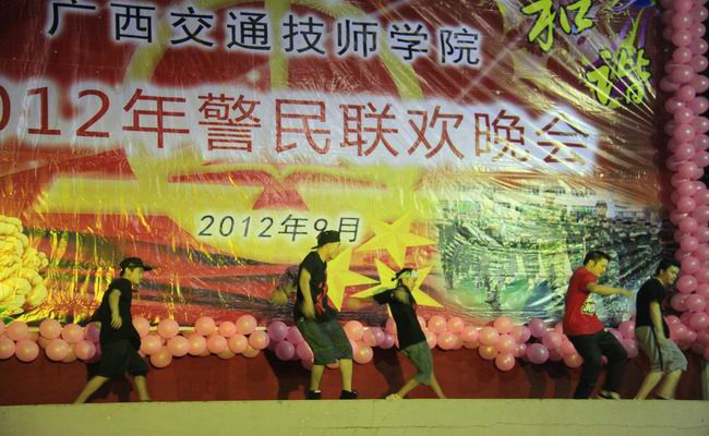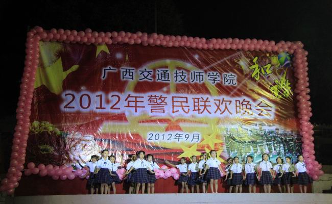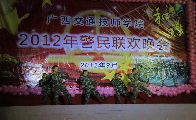 為了活躍2012級新生(shēng)的校(xiào)園(yuán)生活,展示我院新生軍訓生活風貌(mào),展現教官和我師生的風采,學院團委(wěi)於9月7日晚在燈光球(qiú)場舉辦(bàn)了2012年警民聯歡晚會。學(xué)院韋紅教院長,武警二支隊田振須副隊長(zhǎng)觀看演出。