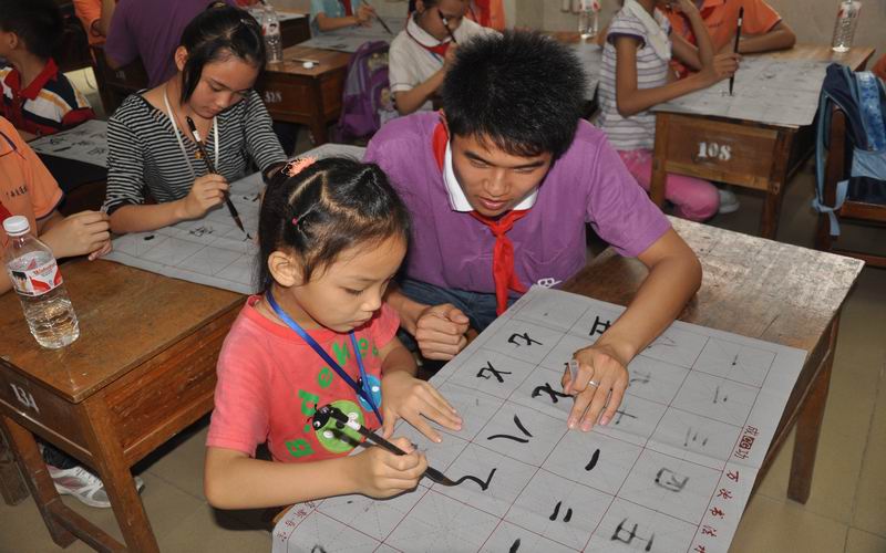 為了弘揚我國博大精深的書(shū)法藝術,提高我校學生的書法素(sù)養,豐富課餘生活(huó),展現個性特長,促進身心健康,同時結合我校開展的“青春助(zhù)力,放飛夢想”關愛農民工子女素質教育誌願服務行動(dòng),我校書法協會(huì)於2012年5月25日下午走出校門,到南寧市星星小學為(wéi)那裏的22個孩子們上了一節書法課。