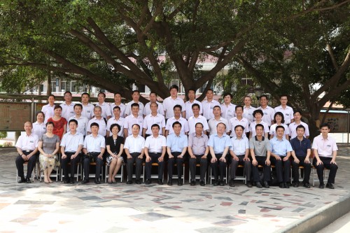 圖七(qī):人力資源和社會保障部王曉初副部長(右一)對學校韋紅教校長(左二)、