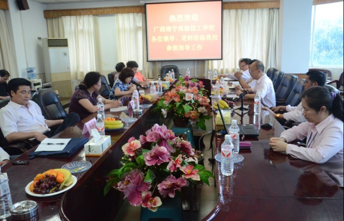 為互相學習辦(bàn)學經驗(yàn),促進校際間的交(jiāo)流,2012年4月18日下午,南(nán)寧技師學校中層以(yǐ)上(shàng)幹部參觀考察團一行18人到我校參觀(guān)學習。學校黨委書記羅華、副校長陸天(tiān)雲、鍾修仁等校領導親切參加了會見,並帶領客人參觀了學校實(shí)習車間和實訓大樓。