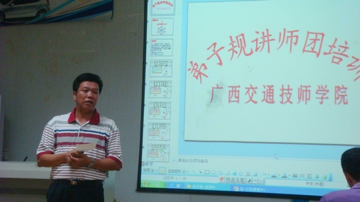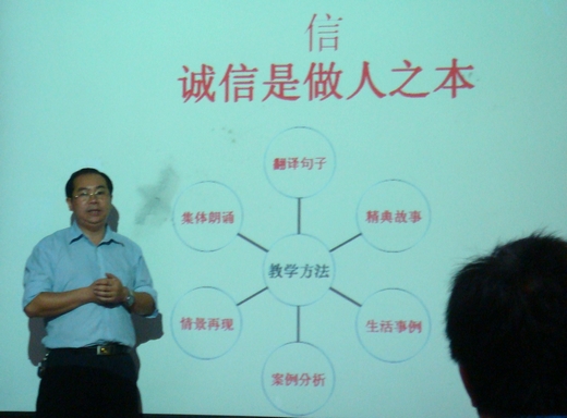 圖一(yī) 鍾修仁副(fù)校長在《弟子規》“講師團”培(péi)訓(xùn)中的講課