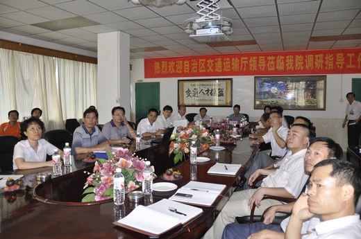 2011年7月6日,自治區交(jiāo)通(tōng)運輸廳黨組成員、總工程師王劼耘,科教處處長岑春一行3人到我校檢查工作。檢查組一行(háng)在武鳴縣人民政府(fǔ)副縣長陸耀忠、武鳴縣工業(yè)委員會、武鳴縣招(zhāo)商局相(xiàng)關負責人的(de)陪同下,首先到了我校規劃建設中的伊嶺新校(xiào)區檢查指導。隨後,檢查組一行到我校本部召開座談會(huì)。