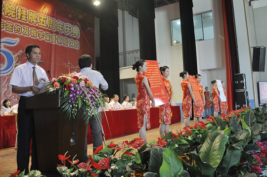 本次五周年慶典暨簽約與捐贈儀式的成功舉辦,不(bú)僅是對我校五(wǔ)年來在各個領(lǐng)域所取得的(de)成果進行的(de)一次全麵深刻的總結回顧,而且是對我校今後的大建設大發展進(jìn)行的一次影響深遠的(de)總(zǒng)動員,吹響了我校全體教職員工向學院未來建設改革事業繼續勝利進軍的集結號。
