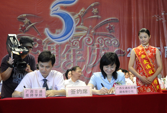 10時整,“廣西交(jiāo)通(tōng)技師(shī)學院掛牌五周年慶典暨校企合(hé)作與校校合作(zuò)簽約及教學設備捐贈儀式(shì)”在學院(yuàn)禮堂隆重舉行。鍾修仁副院長擔任慶典和儀式(shì)主持,現場氣氛熱烈而莊重。