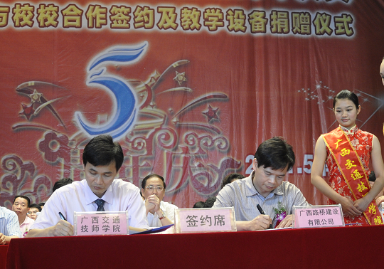 圖17 韋院長代表學院與廣西(xī)路橋建(jiàn)設有限公(gōng)司現場簽署校企合作協議