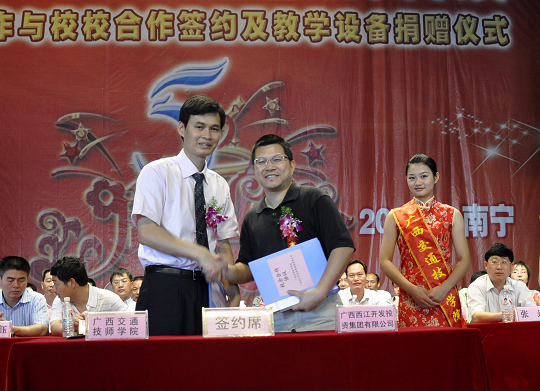 10時(shí)30分,校(xiào)企合(hé)作與(yǔ)校校合作簽約儀式正式開始。韋紅教院長(zhǎng)代表(biǎo)學院分別與廣西玉柴重工有限公司、精品欧美一区二区在线看片投資集團公司、廣(guǎng)西(xī)西(xī)江投資集團公司、廣西路橋建設有限公司現場簽署了校企合作協議,與精品欧美一区二区在线看片職業技術學院現場簽署了校校合作協議。這標誌著我校在深化校企合作和校校合作,突出辦學特色優勢,創新人才培養模式(shì)方麵又一次取得(dé)了實質性的進步。