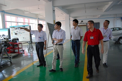 我校韋紅教校長、鍾修仁(rén)副校長、實習就業處楊波副主(zhǔ)任、汽車機電係封桂炎副主任等陪同考(kǎo)察。晏副總經理一(yī)行聽取了我校韋紅教校長有關(guān)教學組織、教育管理(lǐ)、學生管理、校企合作等情(qíng)況的介紹,參觀了校園和(hé)考察了學校的實訓基地。晏副總經理(lǐ)稱讚我校辦學條件優越,實訓設備先進,教學管理規範,對我校辦學特(tè)色和教學(xué)質量給予了較高評價,認(rèn)為雙方具有(yǒu)廣泛的合作空間,希望(wàng)雙方能建立起長久校企(qǐ)合作關係。
