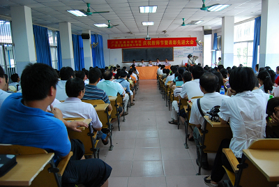 910,我校隆重召開了慶祝教師節暨表彰先進大會,對我校2009-2010年度先進教育工作者、優秀教師、優(yōu)秀班主任進行表彰。