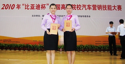 由(yóu)教育部高等學校高職高專汽車類專業教學(xué)指導委員(yuán)會與中國汽車工程學會共同舉辦(bàn)的(de)2010年(nián)比亞(yà)迪杯全國高職(zhí)院校汽車營銷技能(néng)大(dà)賽於(yú)2010521日(rì)在深圳圓滿落下(xià)帷(wéi)幕,我校榮獲二(èr)等獎。