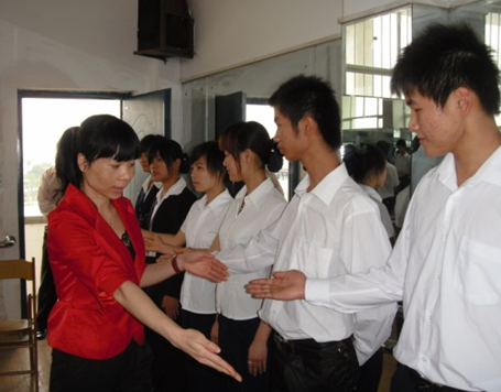 2010年4月1日下(xià)午,黃英姑與劉飛英兩位(wèi)老師便率先以(yǐ)“公開課(kè)”的方式向各位老(lǎo)師展示了上學期末她(tā)們(men)在(zài)對外培訓教學中所運用的新的教學方法與組織形式,賦予“服務禮儀”課程新的教學活力,引導(dǎo)08商務(wù)2班的同學們(men)在“站、坐、蹲(dūn)、行”等實際的操作中體驗禮儀的規範與學習的樂趣,這種教學方式和方法不僅能幫助學生克服害羞的心理壓力,更能營造學生互相學習、互相幫助、互相促進的良好學(xué)習氛圍。