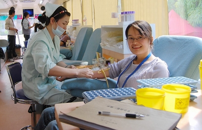 2010318日下午(wǔ),在溫暖的春風(fēng)中,我校團委組織廣大師生在(zài)學校操場舉行了愛心獻血活動。劉康胤等(děng)10名(míng)教職工(gōng)、譚水財等103名學生積極參加了此次獻愛心活動。