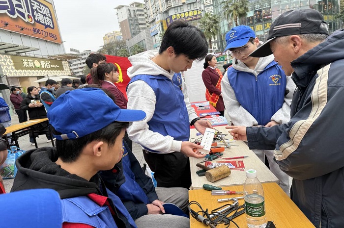 3月5日,信息工程係師(shī)生在興寧區北寧社區黨群服務中心開展“公益家電維修”誌願服務活動