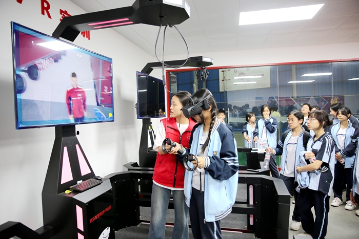 同學們在體(tǐ)驗VR實訓設備(bèi)